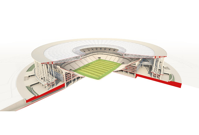 El nuevo estadio multifuncional se diseñó siguiendo las tradiciones arquitectónicas de Brasilia, la capital del país que solo tiene 50 años. La combinación de rampas, puentes, las largas y esbeltas columnas y la monumental cubierta circular son las características claves en su diseño.